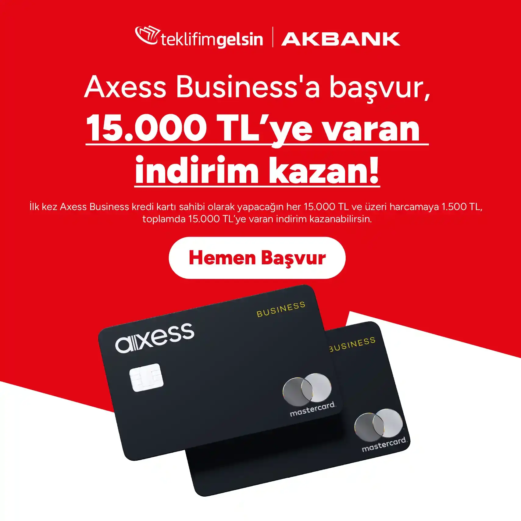 İlk kez Axess Business kredi kartı sahibi olarak 31 Mayıs’a kadar yapacağın her 15.000 TL ve üzeri harcamaya 1.500 TL, toplamda 15.000 TL’ye varan indirim kazanabilirsin.