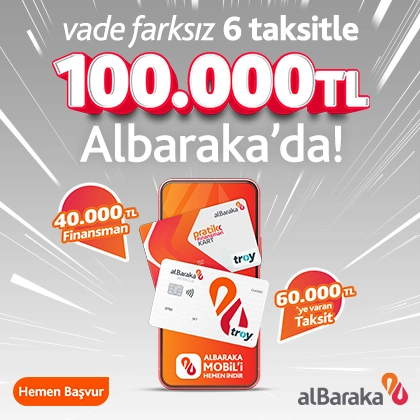 Kampanyadan 04 Kasım – 31 Aralık 2025 tarihleri arasında Albaraka Mobil’i indirip “Müşteri Olmak İstiyorum” adımından ilerleyerek ilk defa Albaraka’lı olan müşteriler Dijital Müşterilere özel vade farksız veya özel oranlı Pratik Finansman Kart” kampanyasına başvurabilecektir.