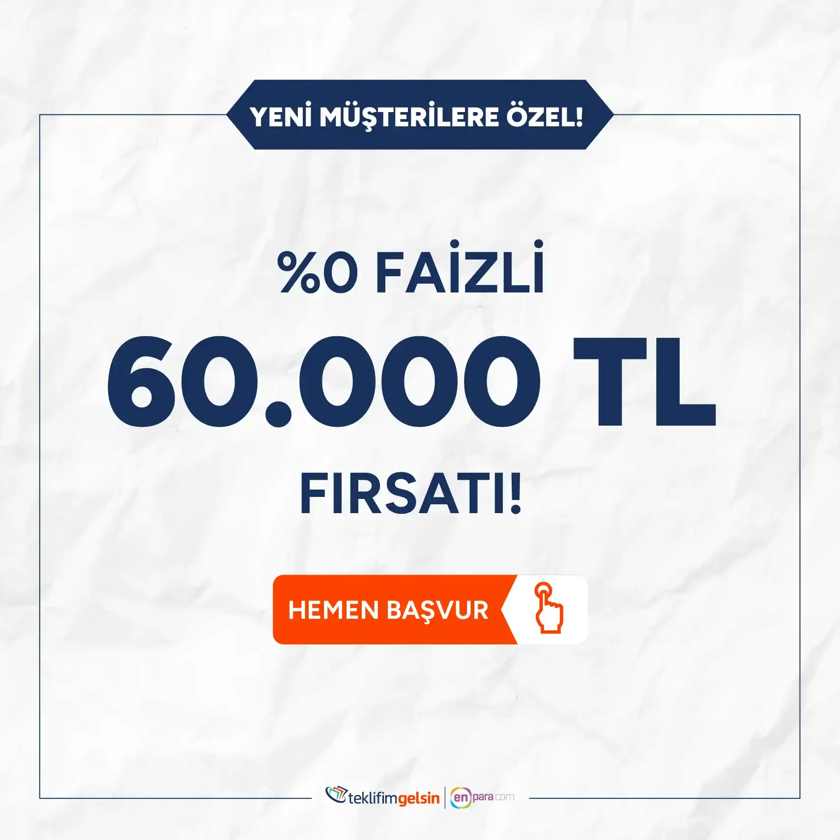 Kampanya sadece henüz Enpara müşterisi olmayan kişilerin TeklifimGelsin üzerinden yapacağı ihtiyaç kredisi başvuruları için geçerlidir.