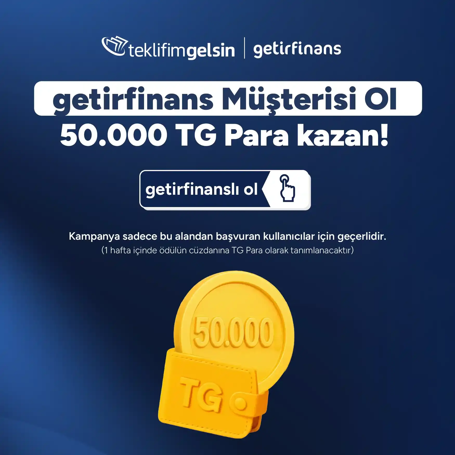 TG Para ödülünü kazanabilmek için getirfinans müşteri olma adımlarının hepsini başvuru tarihinden itibaren 7 gün içinde tamamlaman gerekmektedir.